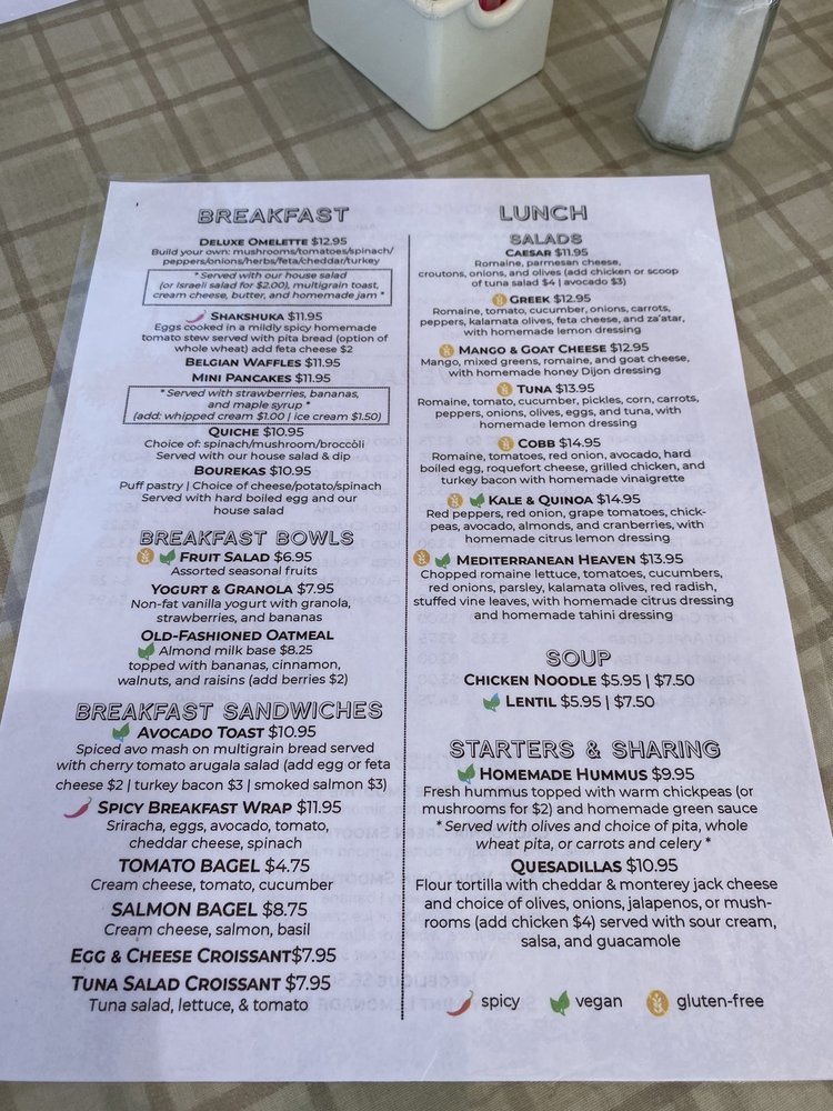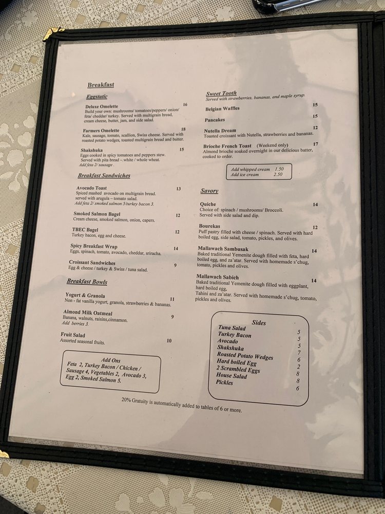 Served with our house salad or Israeli salad, multigrain toast, cream cheese, butter, and homemade jam.